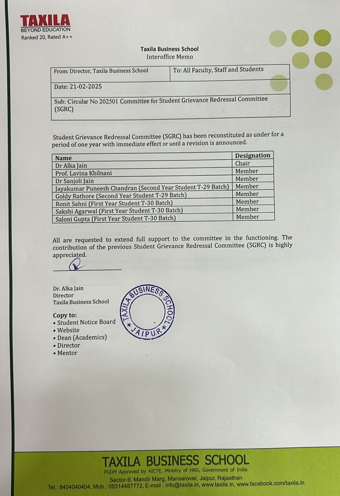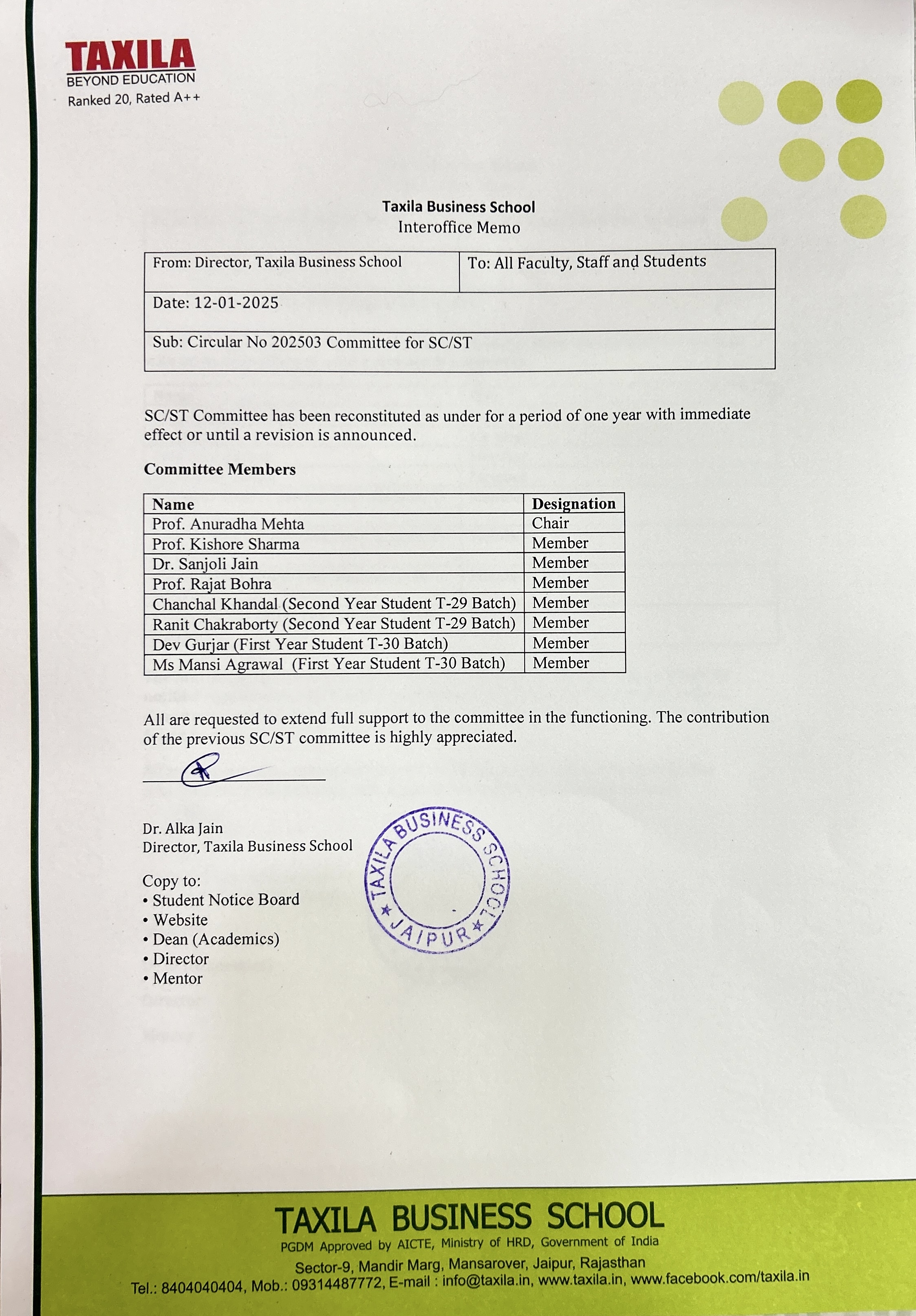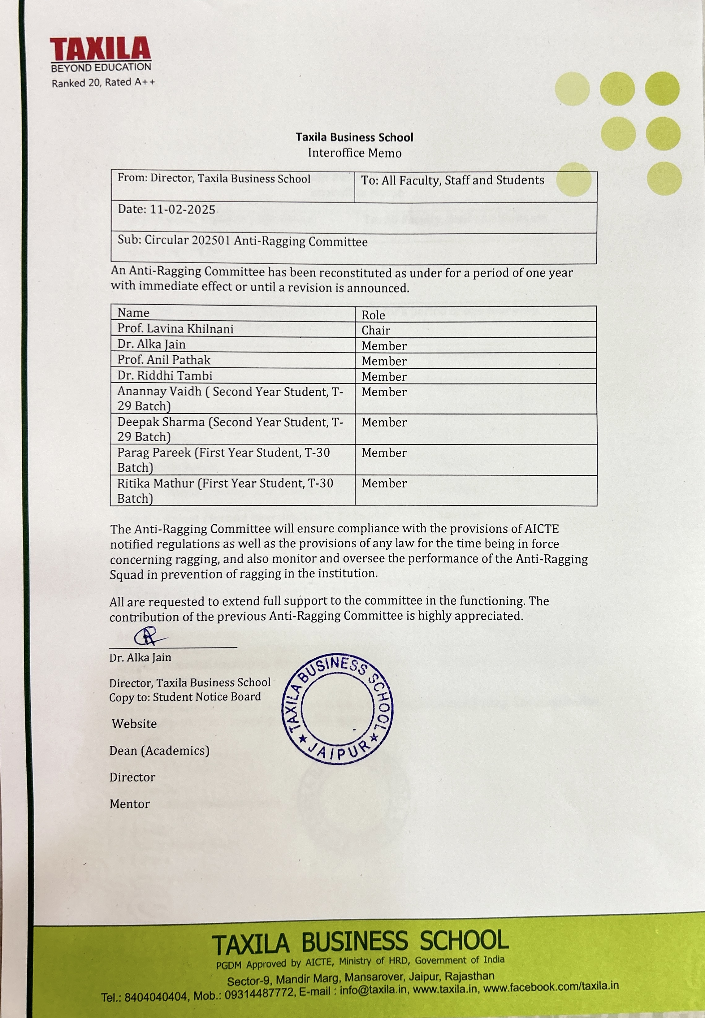 AISHE CERTIFICATE APPROVAL LETTERS