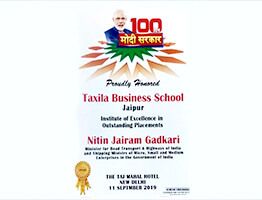 Taxila Business School awarded for Excellence in outstanding Placements by Cabinet Minister Nitin Jairam Gadkari.