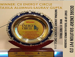 Desire Energy Solution Pvt Ltd a Start-Up by Taxila Alumnus Saurabh wins the first Prize: National Energy Efficiency Circle 2018..